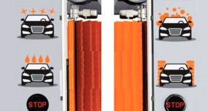 Függőleges kefék: A függőleges kefék a mosás alatt ún. átfedő súrolást végeznek a gépkocsi elejénél és hátuljánál. A gép, mosás alatti haladási sebessége szabadon programozható. A döntött függőleges kefék, a kritikus részeken (pl. a gépkocsi oldal és tető találkozási pontján) is magasabb minőségben, precízebben mosnak.