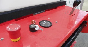 vörösre festett horganyzott szerkezet 300 literes fedélzeti tartállyal rendelkezik, valamint egy